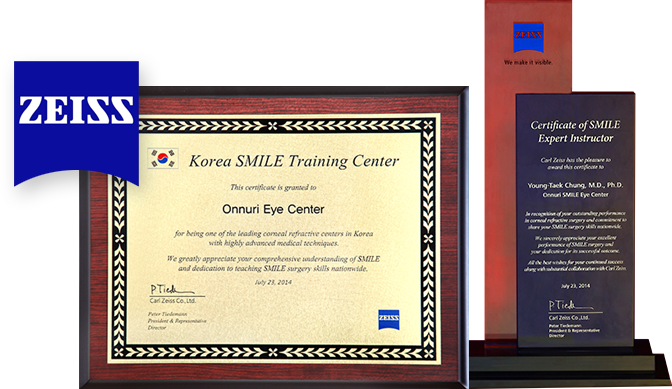 Outcomes of Small Incision Lenticule Extraction: Mild to Moderate Myopia versus High Myopia (J Korean Ophthalmol Soc 2014 Jul 55(7): 963-968)온누리안과병원은 스마일라식의 본고장 독일 자이스(zeiss)사로부터