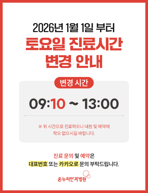 2026년 1월 1일 부터 토요일 진료시간 변경