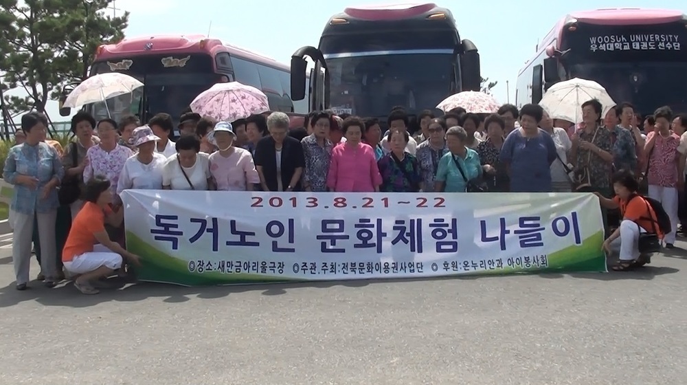 지난 2013. 8. 21일~22일, 전북문화이용권사업단 주최로 전주시 거주 독거노인들의 문화체험나들이 행사가 개최되었습니다. 동 행사 후원회인 본원 "온누리안과아이봉사회" 전석진(본원 본부장) 단장님은 이틀동안 새만금 아리울극장까지 동행하며 거동이 불편하신 어르신들의 손발이 되어주셨습니다. 수고많으셨습니다~!