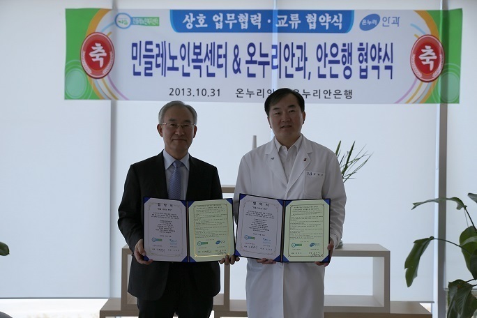 2013.10.31(목), 본원 3층라식센터에서 거행된 민들레노인복지센터와의 상호업무협력,교류협약