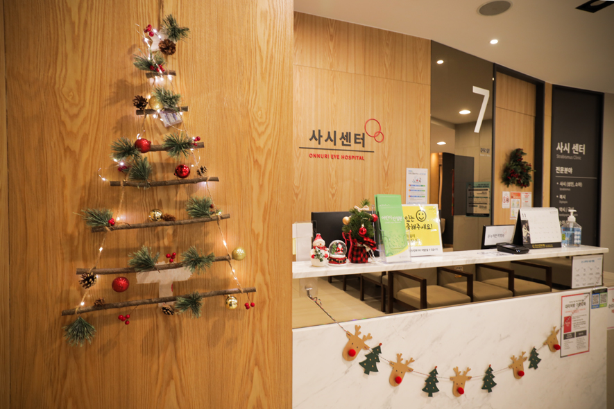 온누리안과병원은 크리스마스 장식은 매년 빠지지 않고 진행되며 눈 건강을 회복하는 과정에서 고생하신