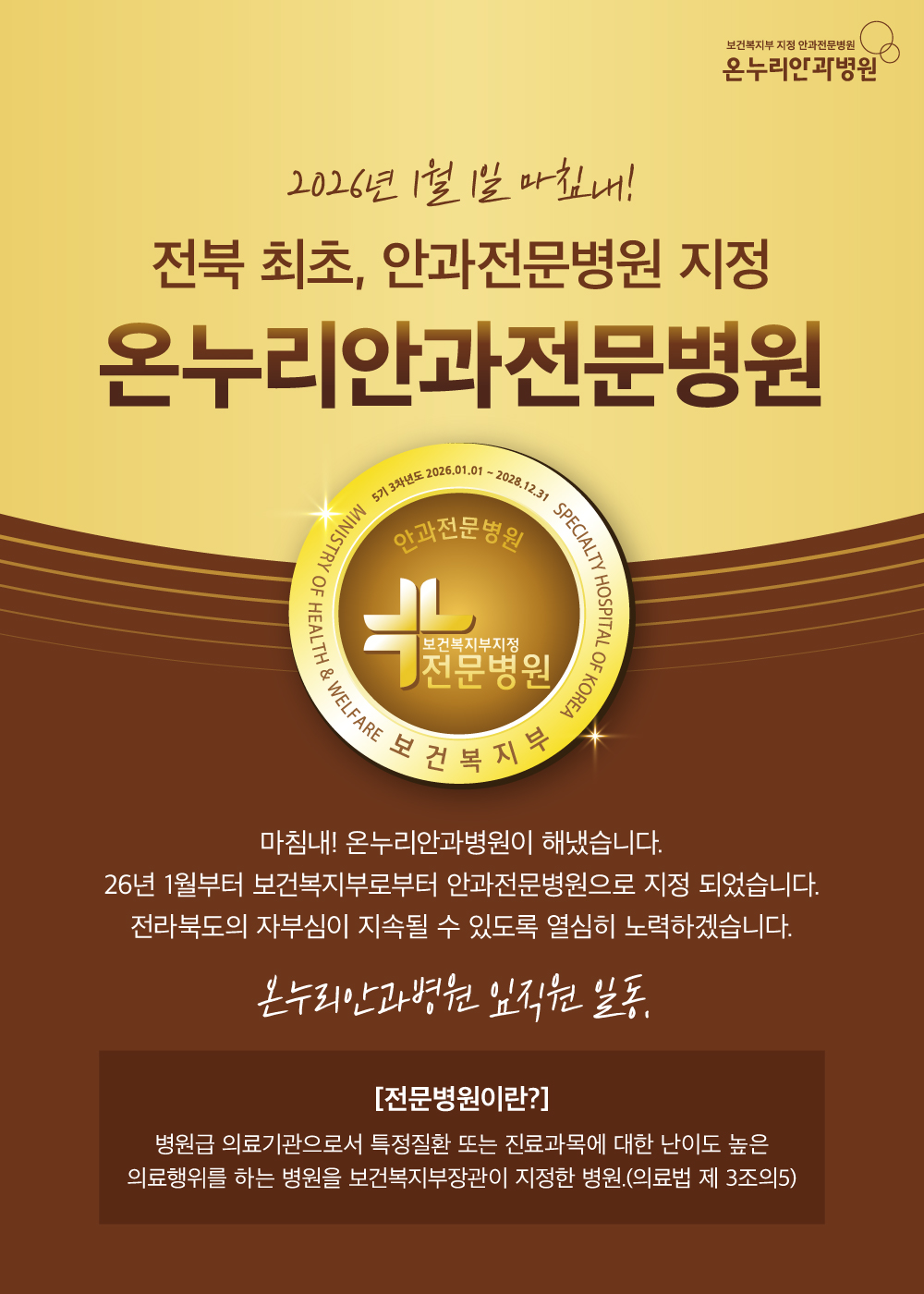 2026년 1월 1일 전북 최초, 안과전문병원 지정
