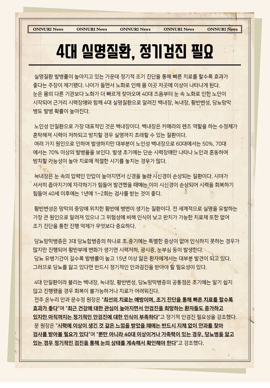 실명 부를 수 있는 “황반변성”, 노안 증상과 혼동될 수 있어