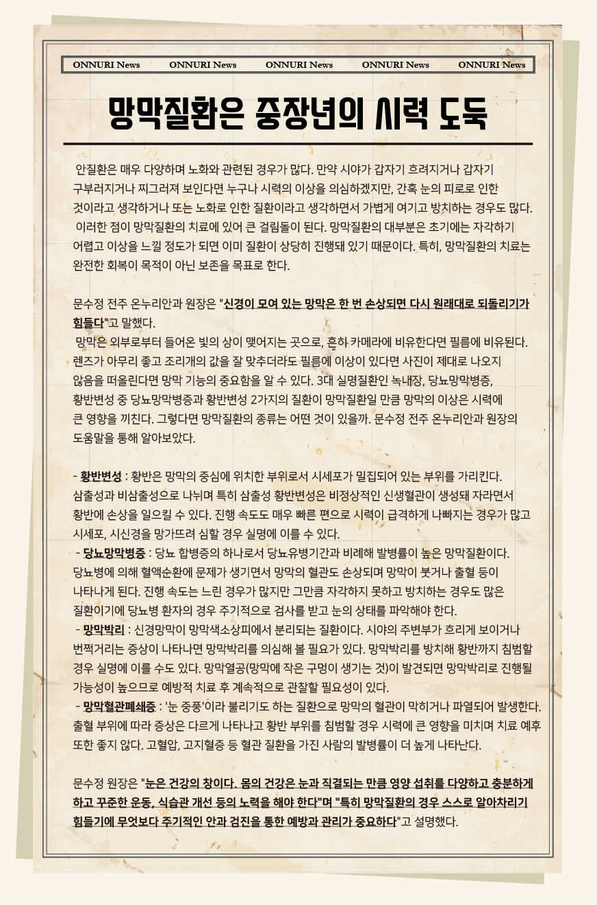 비문증, 망막 질환인 망막박리의 증상일수도 있어