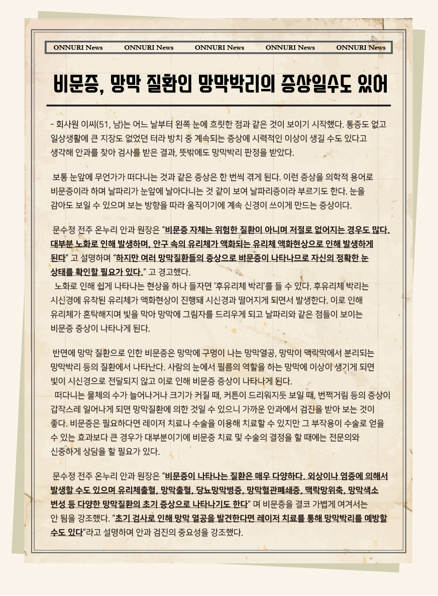 황반변성·당뇨망막병증·망막박리·망막혈관폐쇄 등 망막질환은 중장년의 시력 도둑