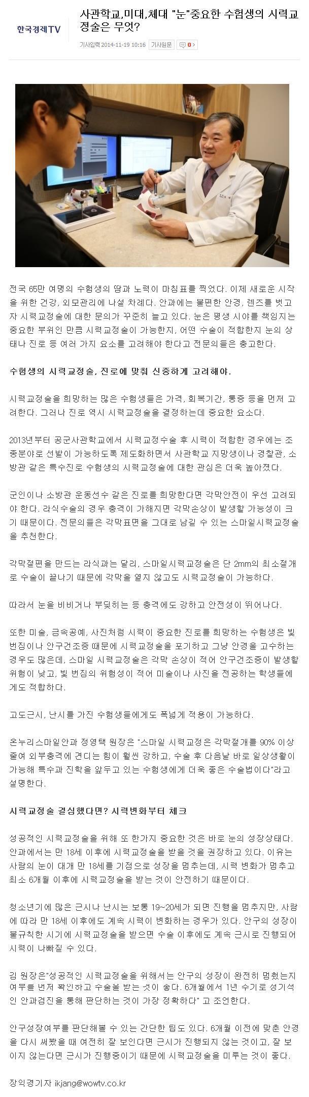 사관학교, 미대, 체대 "눈" 중요한 수험생의 시력교정술은 무엇?