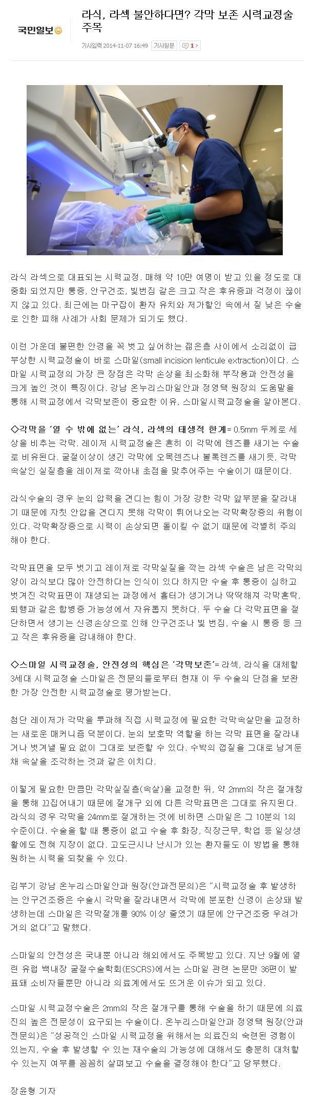 스마일 시력교정, 라식 라섹 불안 잠재운다.