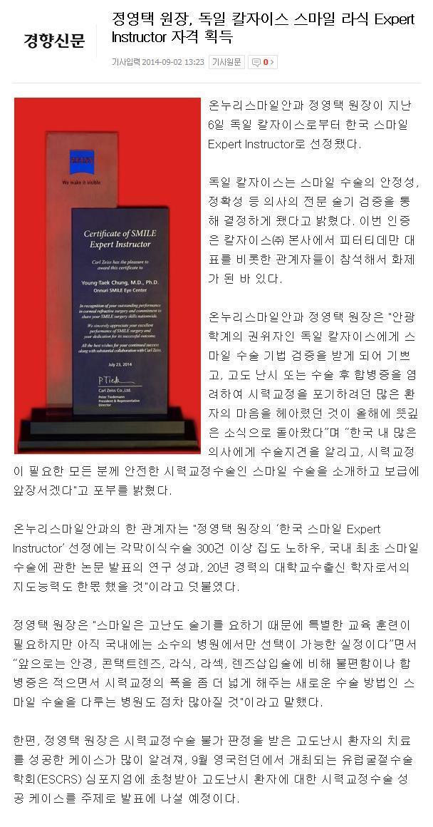 독일 칼자이스 스마일라식 Expert Instructor 자격 획득