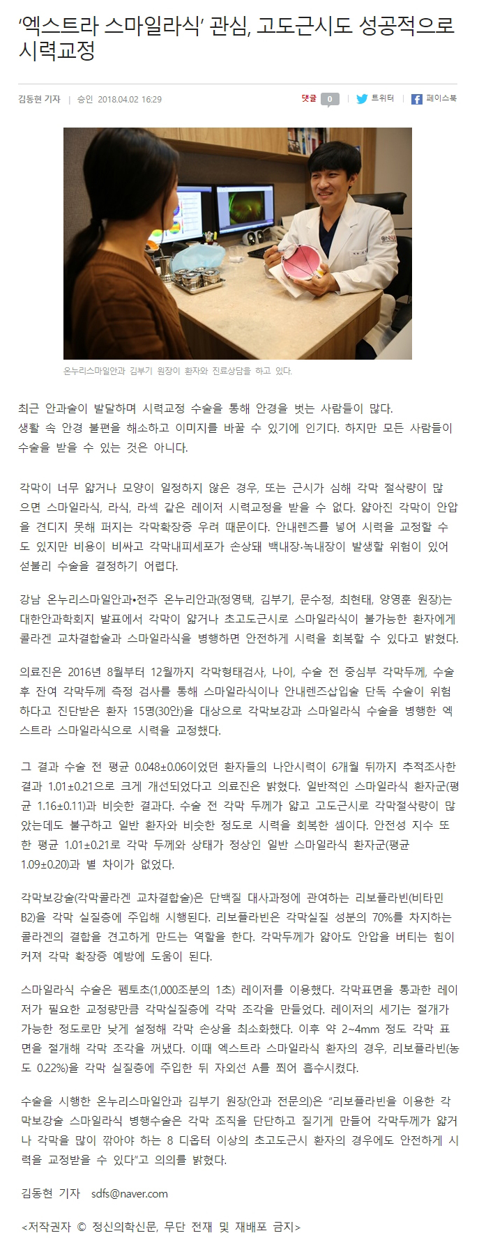 '엑스트라 스마일라식' 관심, 고도근시도 성공적으로 시력교정