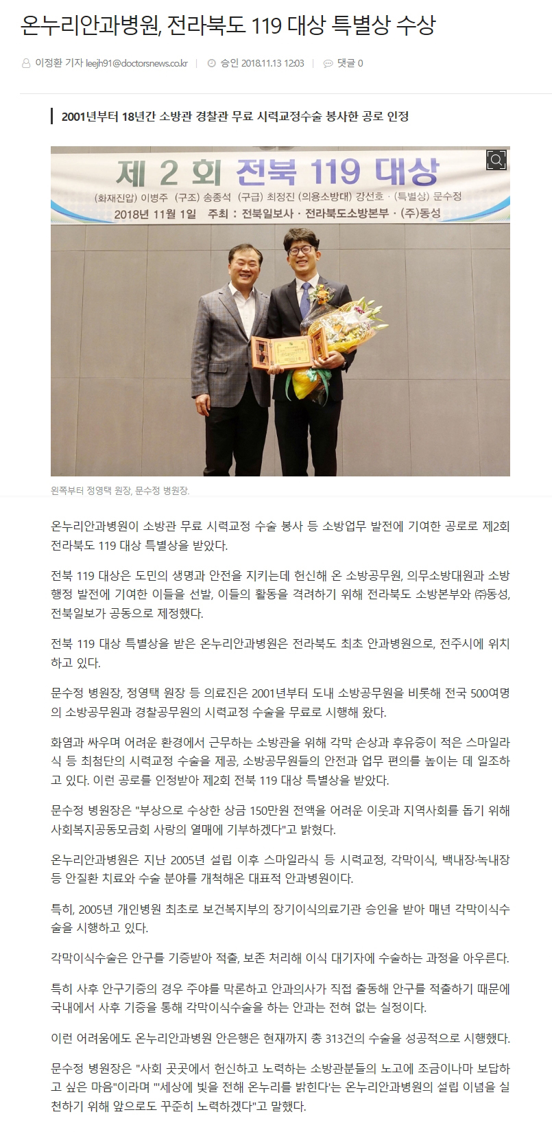 전라북도 119대상 특별상 수상