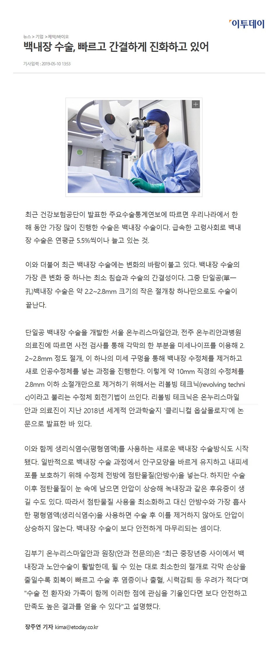 백내장 수술, 빠르고 간결하게 진화하고 있어