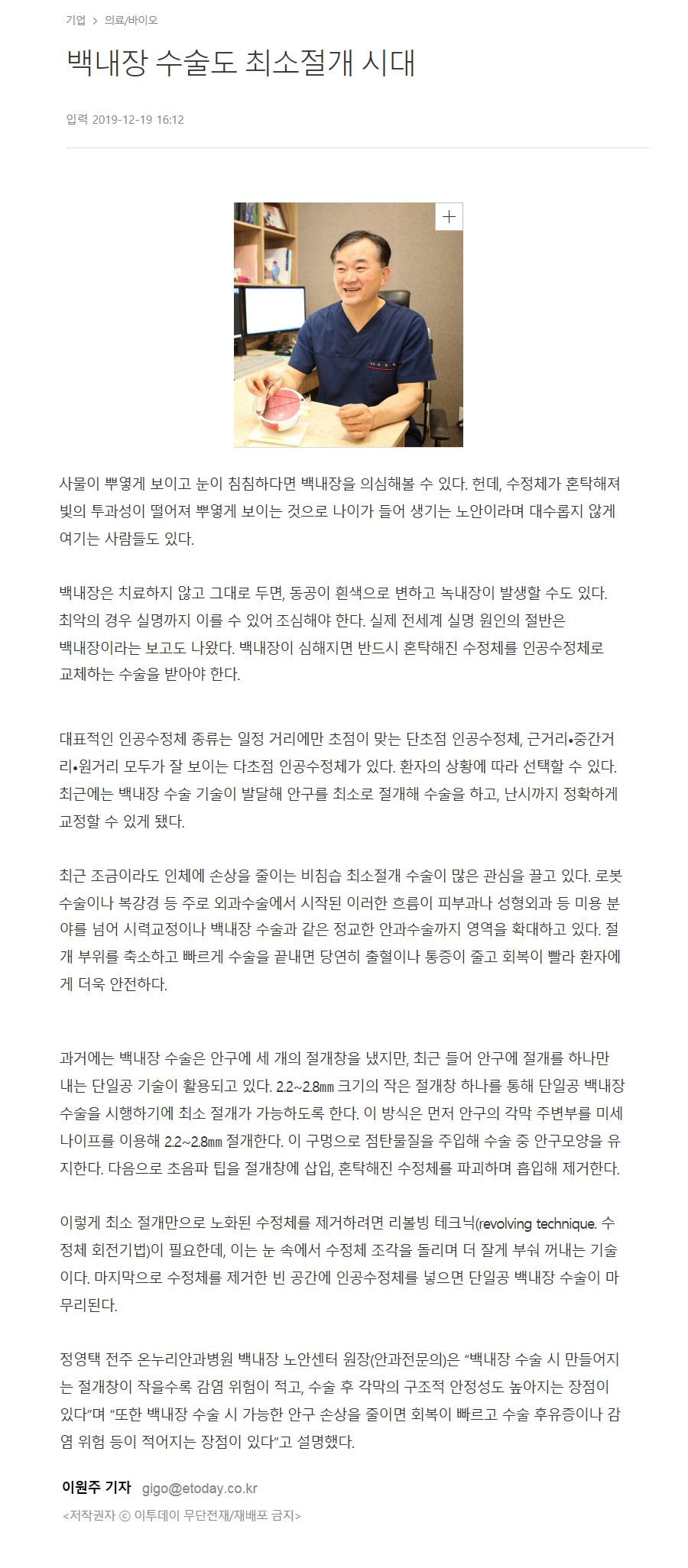'스마일라식' 1mm대 극최소 절개 수술 안정화 단계 접어들다