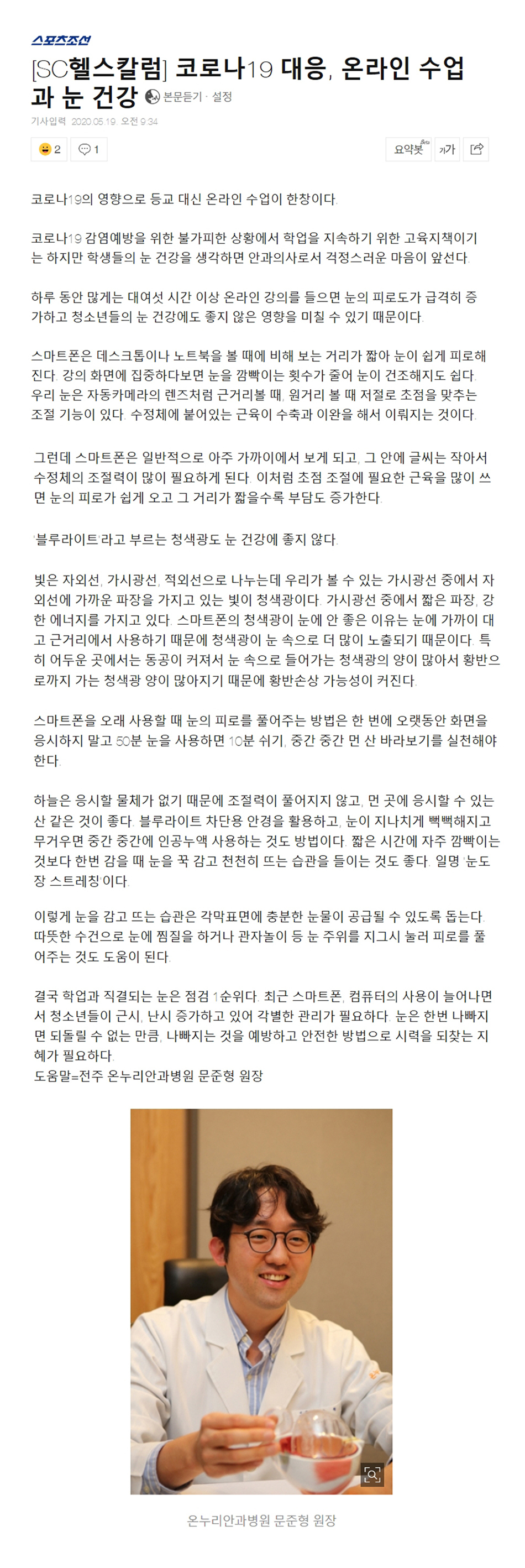 코로나19 대응, 온라인 수업과 눈 건강