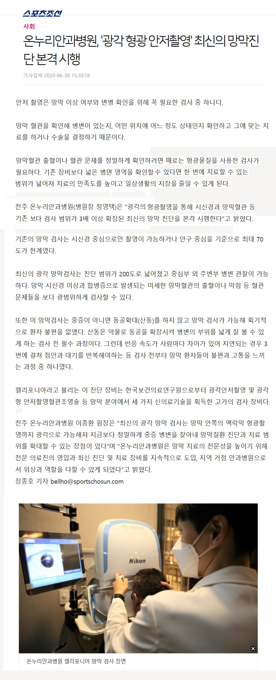 온누리안과병원, '광각 형광 안저촬영' 최신의 망막진단 본격 시행