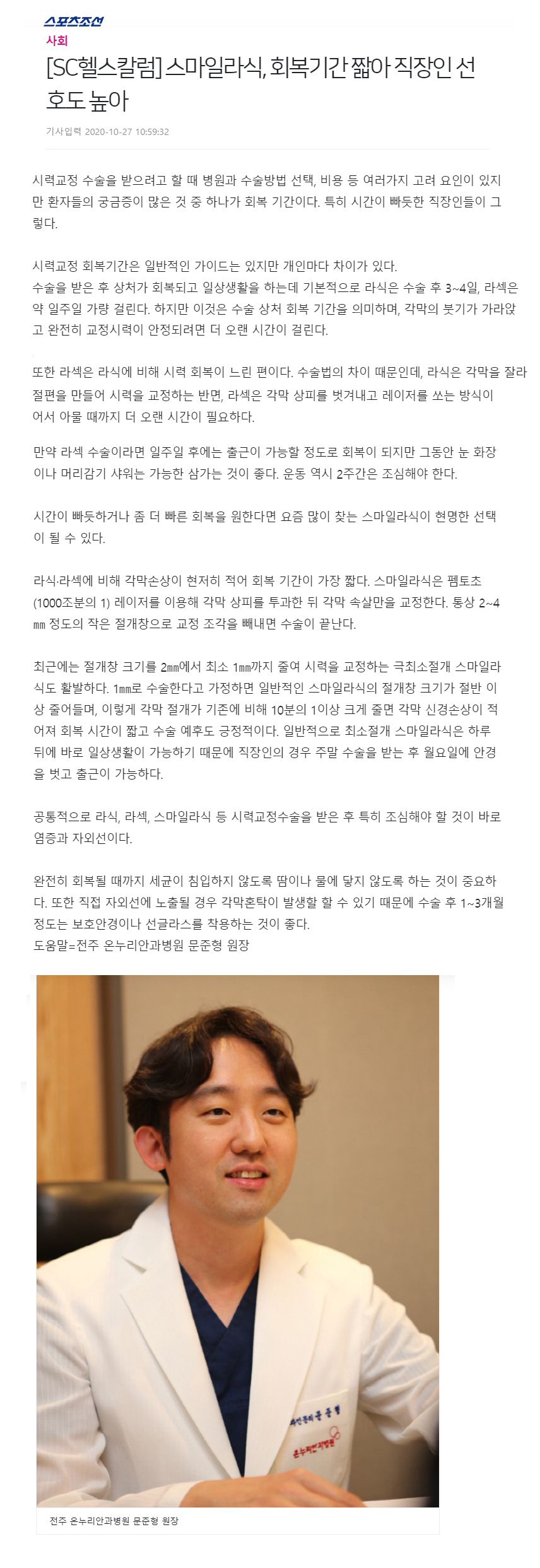 스마일라식, 회복기간 짧아 직장인 선호도 높아