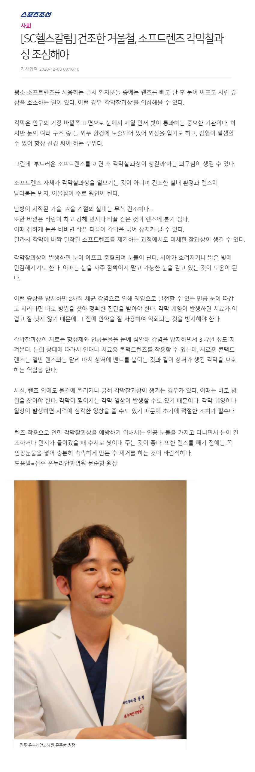 건조한 겨울철, 소프트렌즈 각막찰과상 조심해야