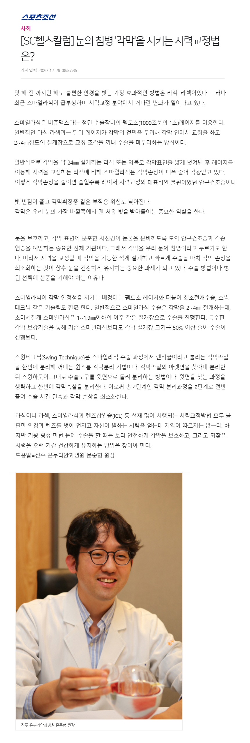 눈의 첨병 '각막'을 지키는 시력교정법은?