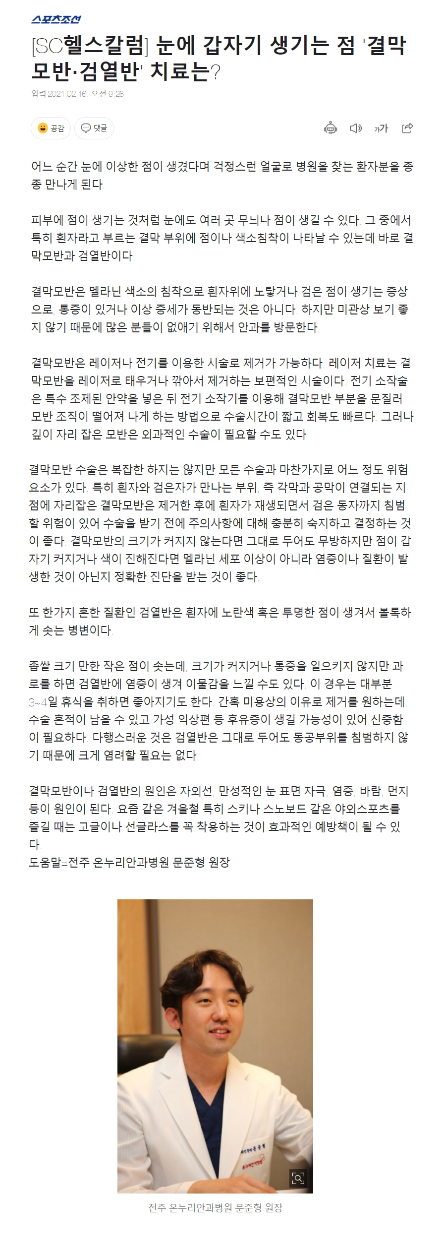 눈에 갑자기 생기는 점 '결막모반·검열반' 치료는?