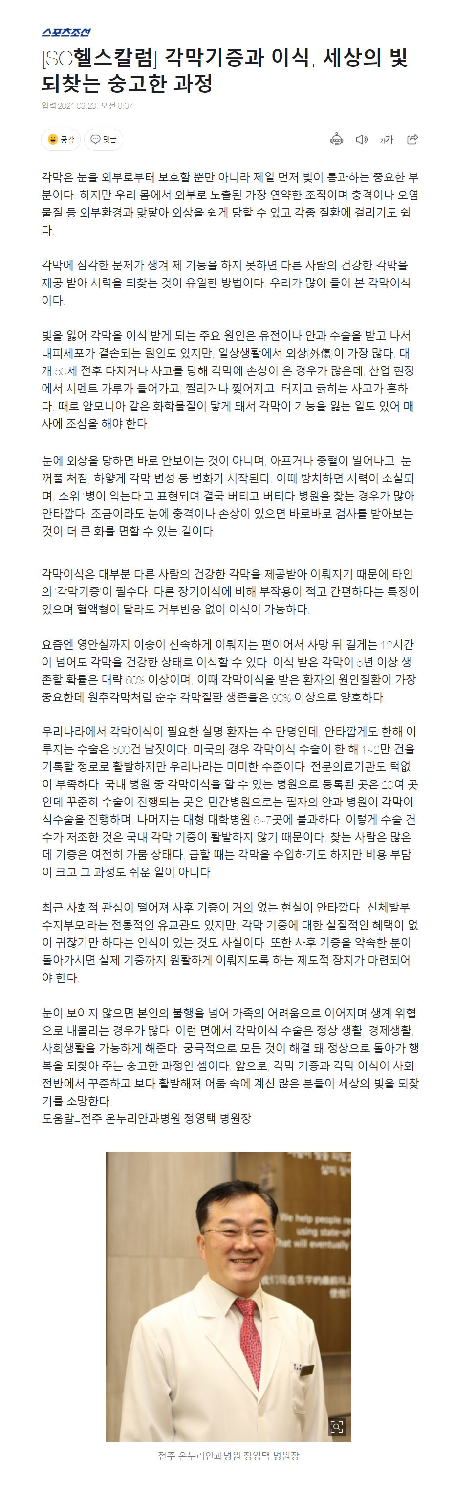 각막기증과 이식, 세상의 빛 되찾는 숭고한 과정