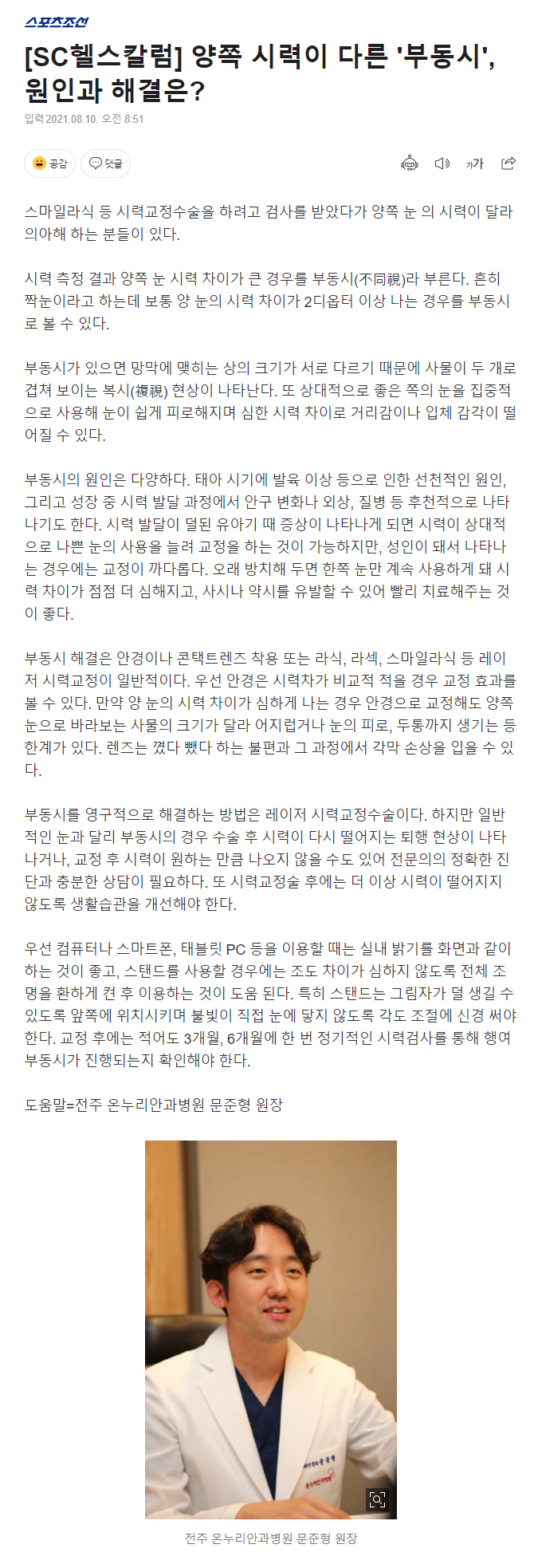 양쪽 시력이 다른 '부동시', 원인과 해결은?