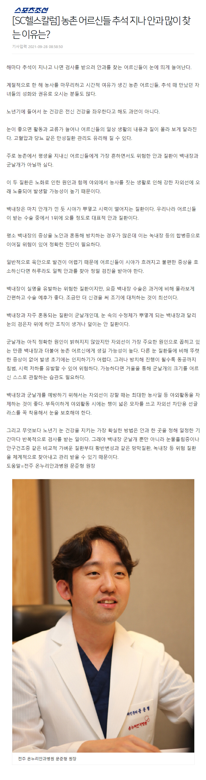 농촌 어르신들 추석 지나 안과 많이 찾는 이유는?