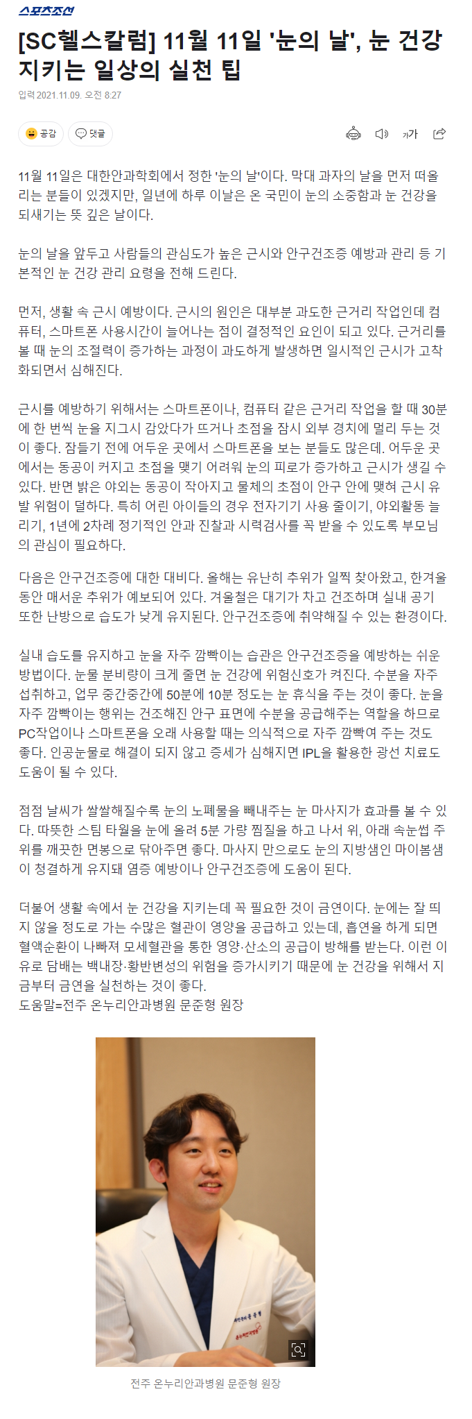11월 11일 '눈의 날', 눈 건강 지키는 일상의 실천 팁