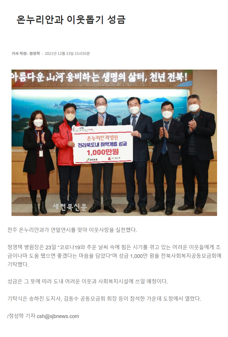 온누리안과병원 이웃돕기 성금 기부