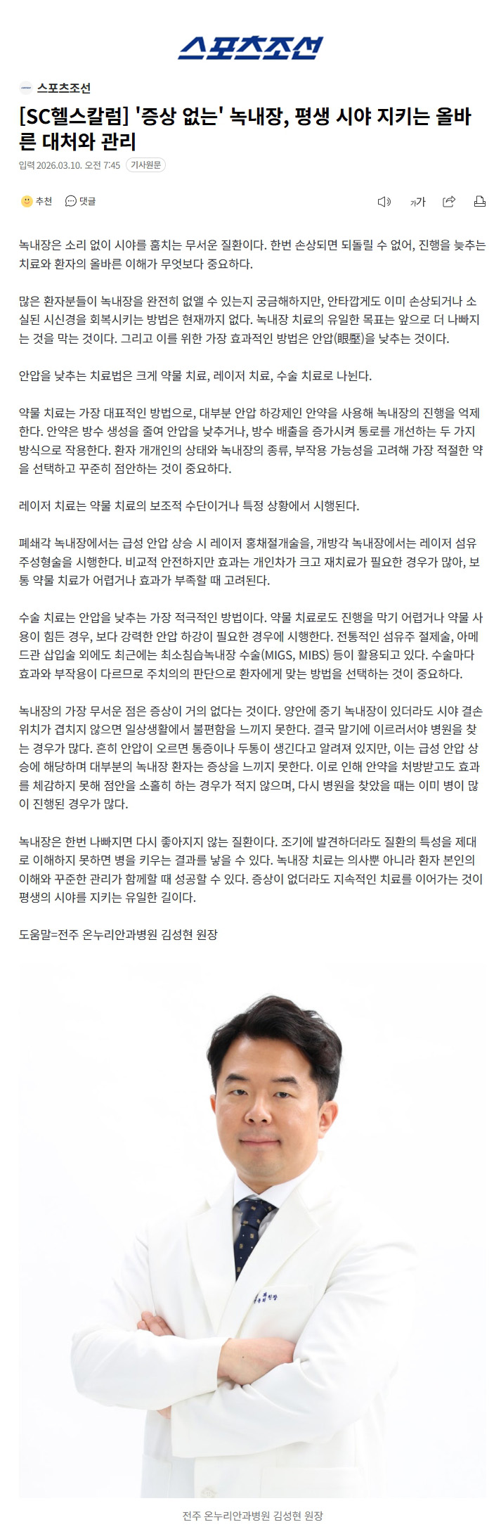 소리 없이 빛을 훔치는 녹내장, 왜 생길까?_김성현 원장